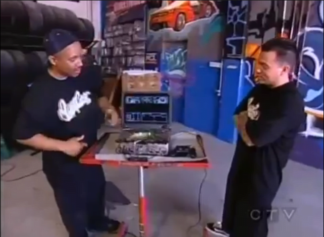 After that brief glimpse of smoke and digital mirrors, rapper Sway interviews the people from West Coast Customs, the people who helped on Pimp My Ride. Remember Pimp My Ride? That goofy little show where X-to-the-Z Xzibit would take hoopties and make them fly rides? Well, they decided to pimp an original Xbox with a screen and LCD mods. Because hell, why not?