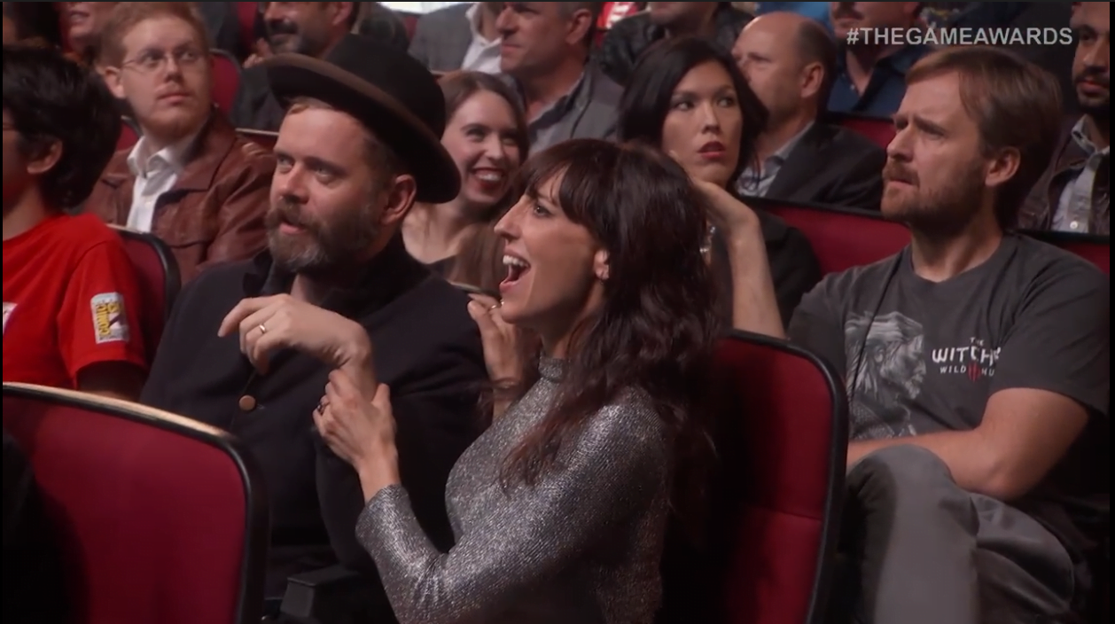 Finally, we have one more mishap, and this is a case of a mistake with one of the awards. Game designer Jade Raymond presents the award for Best Performance, of which Viva Siefert as Hannah Smith in Her Story wins the award. But Jade reads off the card as “Viva Siefert: The Witcher 3.” Viva was not in The Witcher III; the nominee for that was Doug Cockle voicing Geralt of Rivia. CD Projekt Red’s Marcin Iwiński, who coincidentally sat behind Siefert, gave the most puzzling reaction.