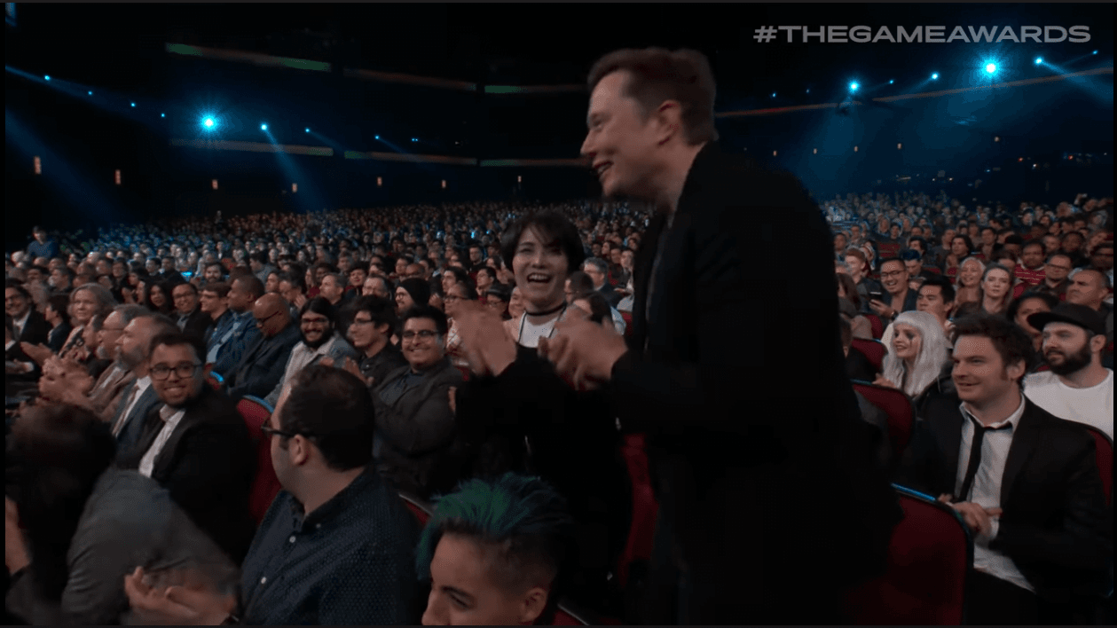 At one point, Grimes appears to perform a song to promote Cyberpunk 2077. Since her partner at the time was rich man, future divorced dad, and setting Twitter aflame Elon Musk, he attempts to give a standing ovation, but gets cut off by the cameras. Only Ikumi Nakamura joins in, likely in a “I have no idea what’s going on here!” moment.