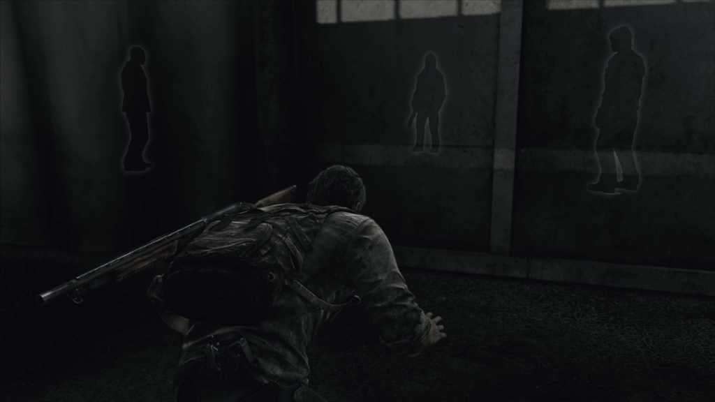 It’s a third-person stealth action shooter. The stealth is probably the most competent thing on offer, with Joel having magic “detective vision” abilities by holding R2, which will show enemies in a nearby range through walls to better plan your strategy. Throwing bottles and bricks for distractions or outright stunning individual enemies becomes essential, and it doesn’t take much for Joel to stealthily take out enemies by grabbing them and using a finishing move by tapping Triangle twice or Triangle then Square. There’s only one weapon – an old-school bow – that can silently take out enemies at range, all the other weapons are loud guns and will immediately alert everyone to your presence when used.