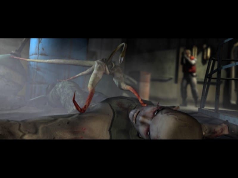 These little bastards will jump up onto ceilings and slowly suck out the life of Hansen unless they’re shot down. This kinda ruins the pacing in some areas, especially in some later combat-heavy sections where you’re swamped by several enemies emerging from the floor. In a sense, it kinda reminds me of the “crimson head” mechanic from the 2002 Resident Evil remake, where if you didn’t burn a zombie or blow its head off, they’d come back faster and deadlier. It’s that kind of annoying.