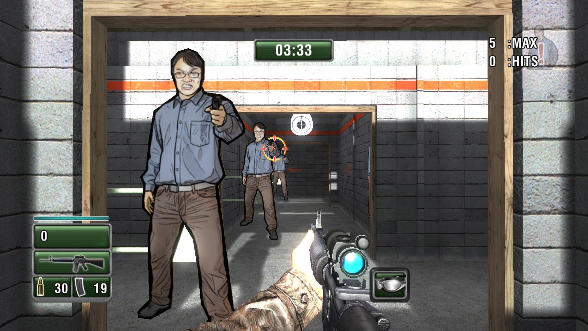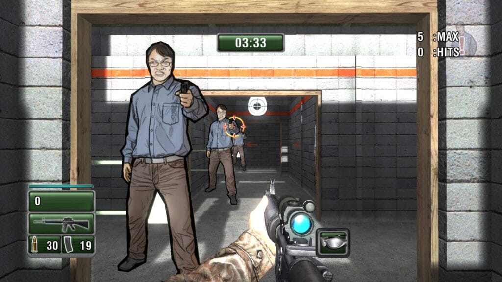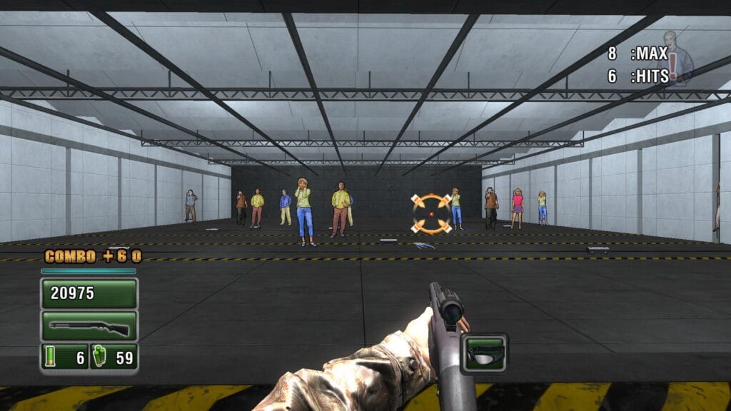 There isn’t much of a story to Reload. Your player character goes to various target ranges with many different types of firearms, with a goal at each mission: Get a certain amount of points, avoid harming too many civilians, that kind of stuff. Fulfill the mission requirements and we’ll move on to the next stage with different requirements than the last. Lather, rinse, repeat.