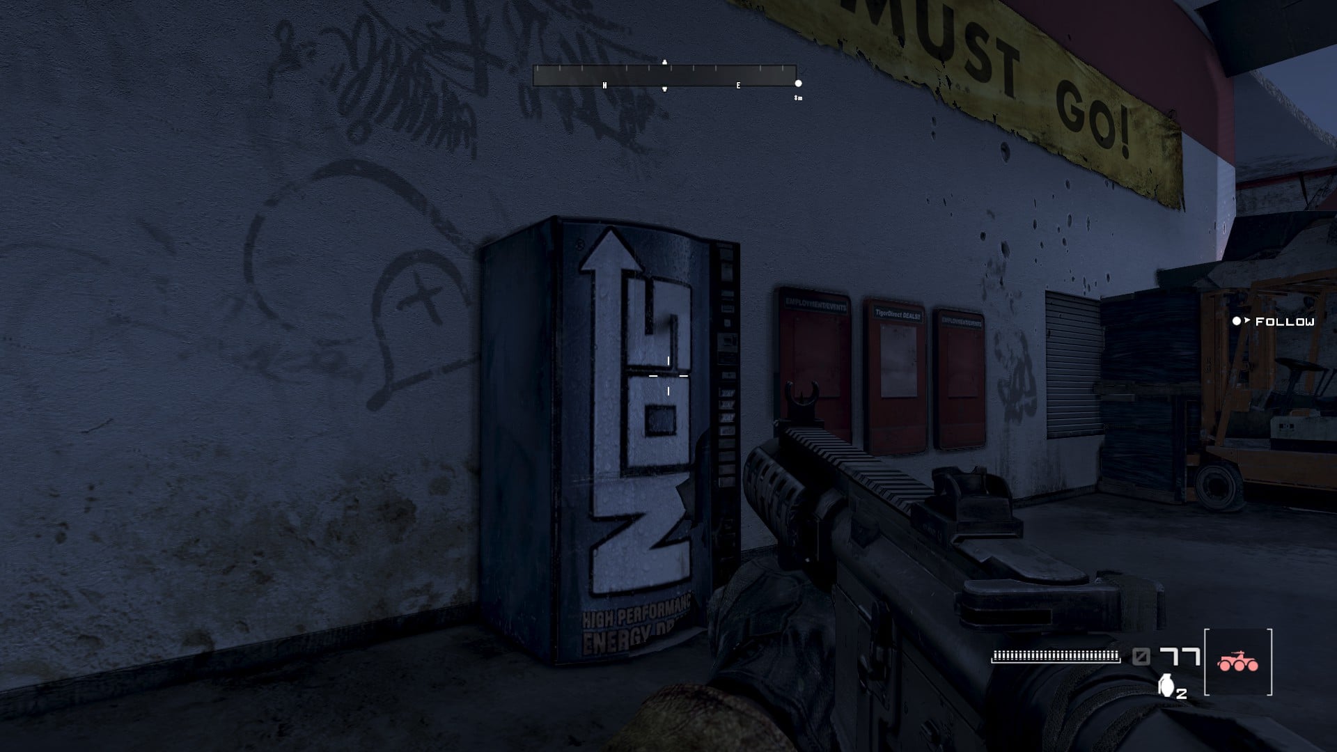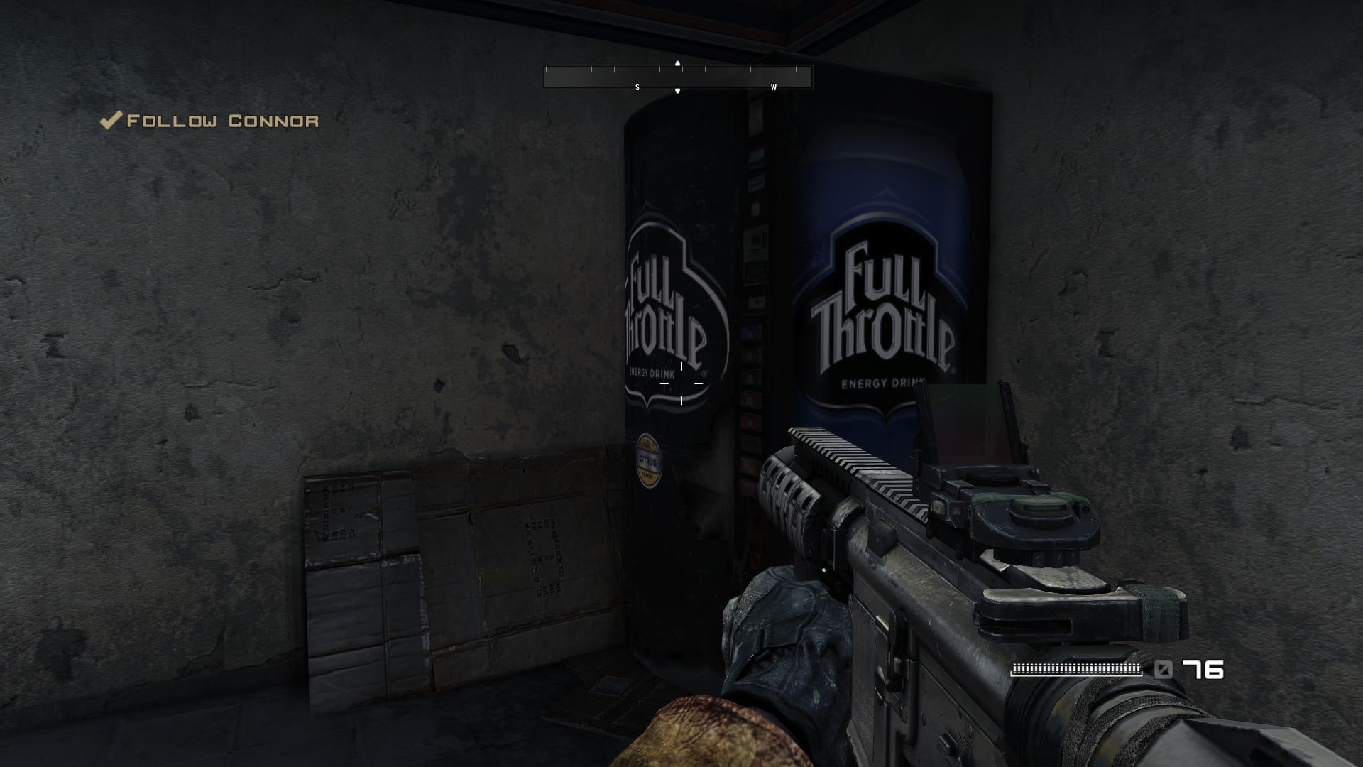 Not long after Jacobs escapes, they slip through a certain restaurant chain – more on that later – and walk past a Full Throttle vending machine. An energy drink brand by Monster, it’s one of two brands they own that are featured in this game, the other being NOS, which shows up a little later into Chapter 3. Oddly enough, Monster itself is a no-show here. Guess they save the main brand for the real prestigious games like Call of Duty.